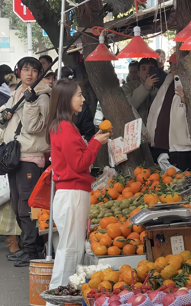 这就不禁让人想,她到底是来成都干嘛的?拍的又是个什么节目?看她在水果摊前面拍了那么久,难道是跟吃东西有关系?大家都在猜,也都挺想早点在电视上看到这个节目。
