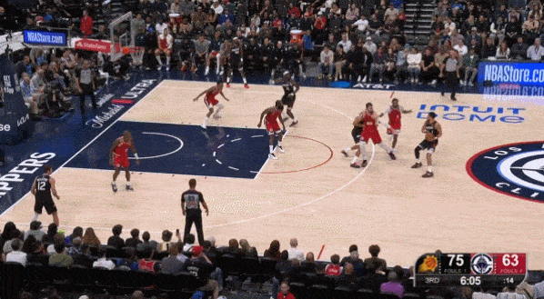 ——对阵快船,24分6篮板7助攻,投篮22中10